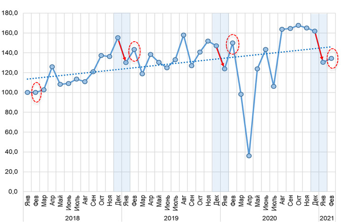 2021年2月,汽车市场大众需求较1月增长3%。不过,与2020年2月相比,这一数字下降了10.4%。 CEIR 对此解释称,Asaka 工厂暂时关闭 停止了 2021 年 1 月至 2 月进行生产以实现现代化。